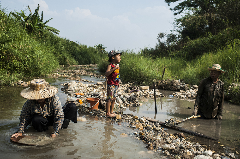 Durante la stagione di secca del fiume Wang, nelle sue acque gli abitanti dei villaggi del distretto di Wang Nuea, nell’area di Lampang, nel nord della Thailandia, si dedicano ogni anno alla ricerca di pepitine d’oro. Si comincia a cercare l’oro alle 10:00 del mattino e si prosegue fino al tramonto. Spesso è necessario un secondo lavoro per poter sopravvivere, perché si arriva a raccoglierne per un valore di circa 15 dollari USA al giorno e solo in un limitato periodo dell’anno. Due anni fa, quando il livello del fiume era sceso di molto, alcuni hanno raggiunto i 200 dollari in un giorno solo.