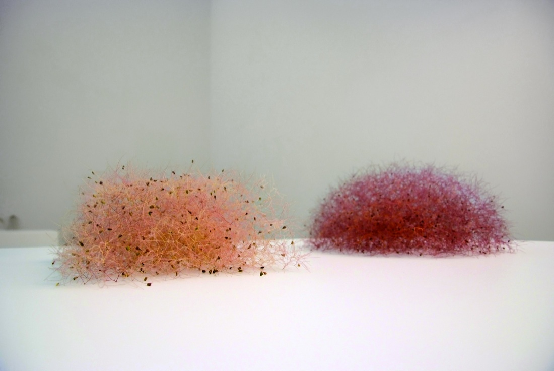 Due forme permeabili, 2010, fiori d’albero, 13 x 30 x 26 cm + 18 x 38 x 30 cm