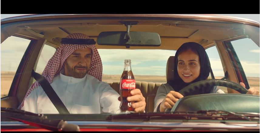 Si tratta di una pubblicità il cui claim recita: “Il cambiamento ha un sapore”. Nella clip si vede un padre saudita che indossa la keffiyeh insegnare alla figlia a guidare l’auto mentre sul cruscotto resta in bilico una bottiglietta di Coca-Cola.