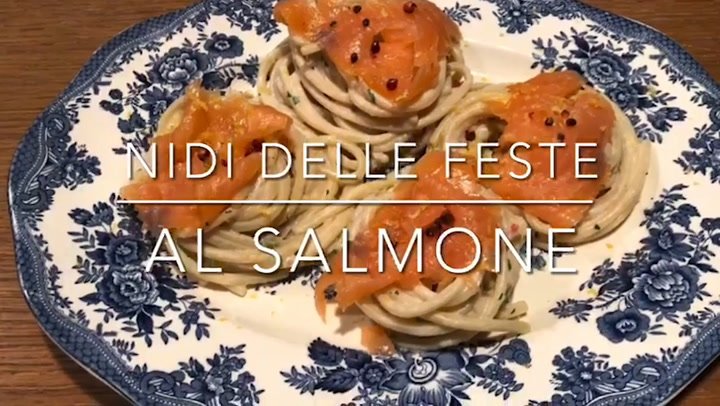 Preparazione – Mettete la pasta a cuocere in abbondante acqua salata. Nel frattempo riducete a fettine sottili gli scalogni, tritate finemente il prezzemolo. In una padella ampia – ci dovrete saltare poi la pasta – fate fondere il burro e fate stufare gli scalogni; quando si saranno ammorbiditi aggiungete il mascarpone per ottenere una crema. Se serve allungate con un po’ di acqua di cottura della pasta. Grattugiate la buccia del limone sulla crema – senza intaccare la parte bianca del limone – e aggiungete anche il prezzemolo tritato. Scolate la pasta e saltatela nella cremina. Se serve aggiustate di sale. Con l’aiuto di un mestolo e delle pinze fate tanti nidi di spaghettoni e adagiateli sul piatto di portata. Su ogni nido poggiate una fettina di salmone e qualche bacca di pepe rosa e servite.