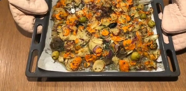 Come far divertire i bambini – Fatevi aiutare prima a mescolare e condire le verdure e poi a sistemarle nella placca del forno e sul pesce.