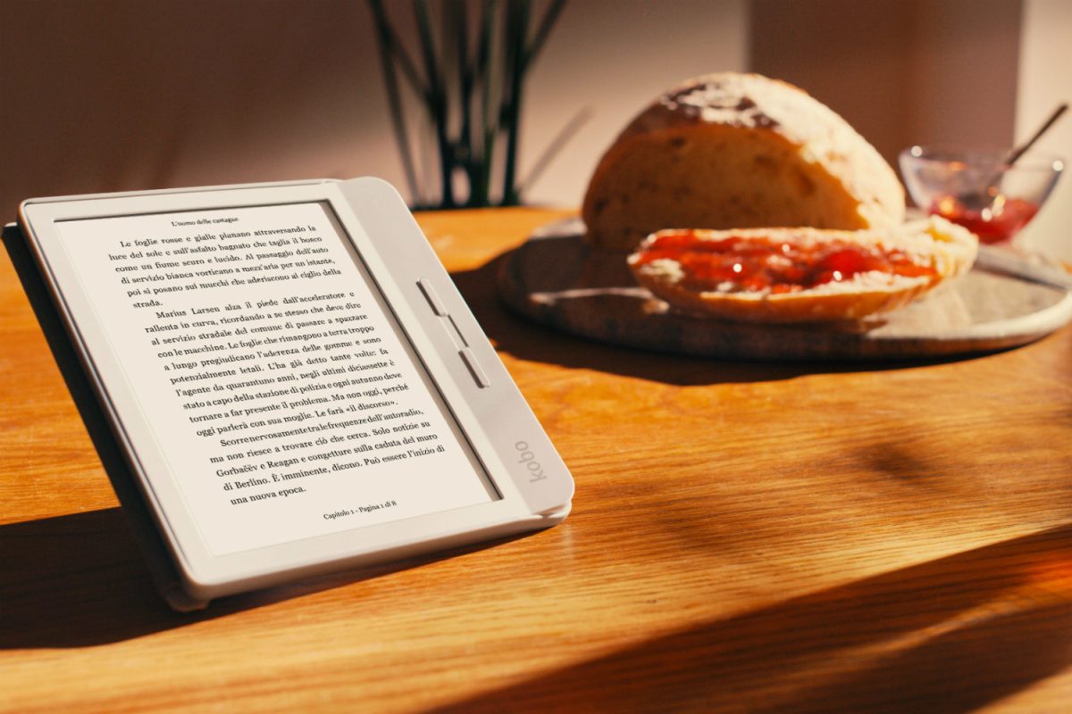 Il lettore di eBook Kobo Libra H20 (180 euro): si può portare anche nella vasca da bagno.
