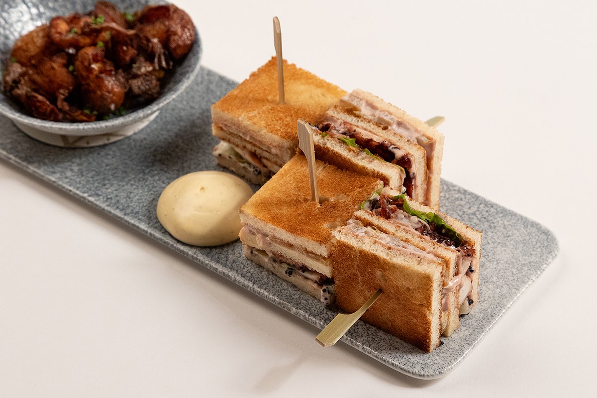 Ineccepibile anche quello indiscutibilmente classico, nella forma e nella sostanza, dello chef Alessandro Liberatore del ristorante Le Bistrot di Villa Cora, servito con foglioline di tenera insalata. E a proposito di contorno, è quasi inutile ricordare la metà perfetta del club sandwich, ovvero le mitiche patatine, ancora meglio se fritte con la buccia. Tra gli chef, c’è stato anche chi come Stefano Ballarino, del ristorante il Verrocchio e L’Oliveto dell’Hotel Villa La Massa, ne ha fatto una versione classico-autoctona utilizzando, tra gli altri ingredienti, il pane di Montespertoli e i pomodorini fiorentini costoluti. Un tocco di Salento lo ha messo Gentian Shehi del Winter Garden (The St. Regis Florence) con una salsina di cime di rapa, con il polpo alla griglia, la burrata, i pomodori confit e un velo di seppia. Variazioni che non mutano la straordinaria funzione di questo sanwich: regalare al palato, e allo spirito, puro piacere. Alle cinque del pomeriggio o nel pieno della notte.