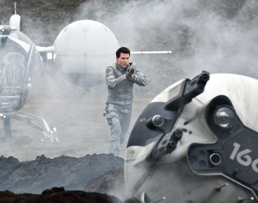 Nel 2077 Jack Harper (Cruise) è uno degli ultimi umani rimasti sulla Terra, diventata ormai inospitale e una prateria di desolazione, attaccata 60 anni prima dagli alieni. Coadiuvato dalla collega Victoria (Andrea Riseborough), si occupa della riparazione di droni ed è un pilota temerario e abilissimo. Mancano pochi giorni perché anche loro due evacuino per trovare riparo su Titano insieme agli altri sopravvissuti. Coordina le loro operazioni un’entità suprema che si manifesta con i collegamenti video di Sally (Melissa Leo). Prima di abbandonare definitivamente il pianeta, alcune trivelle sono attive per recuperare dalla superficie terrestre le ultime risorse vitali.