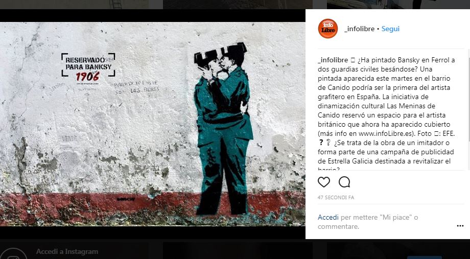 Quello che sperano i cittadini di Ferrol (Hermida in primis) è che lo stesso destino spetti a loro e che la sorte sia stata tanto favorevole da far sì che Banksy, il misterioso Banksy, l’inarrivabile Banksy, il geniale Banksy, abbia scelto proprio il barrio di Canino per il suo debutto in terra iberica con la provocatoria immagine degli irreprensibili Guardia Civìl che si scambiano un bacio di vero amore.