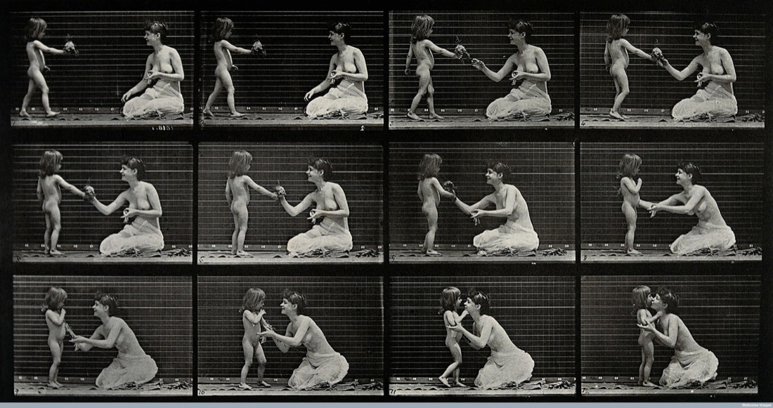 Partito nella sua “sperimentazione” con una sequenza di immagini che documentavano con assoluta precisione il movimento dei cavalli, Muybridge – dopo aver immortalato gli uccelli in volo e le movenze degli animali dello Zoo di Philadelphia – applicò la sua tecnica sull’ uomo: divennero presto celebri i suoi nudi, fotografati su uno sfondo con una griglia disegnata, mentre correvano, salivano le scale o portavano secchi d’acqua.