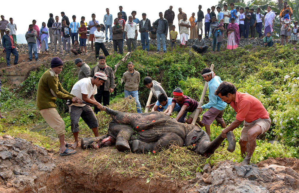 L’elefante travolto da un treno in India e altre foto del giorno, 20.12.2013