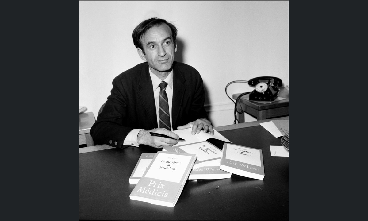 26 novembre 1968. Lo scrittore Elie Wiesel autografa copie della sua novella “Le Mendiant de Jerusalem” a Parigi.