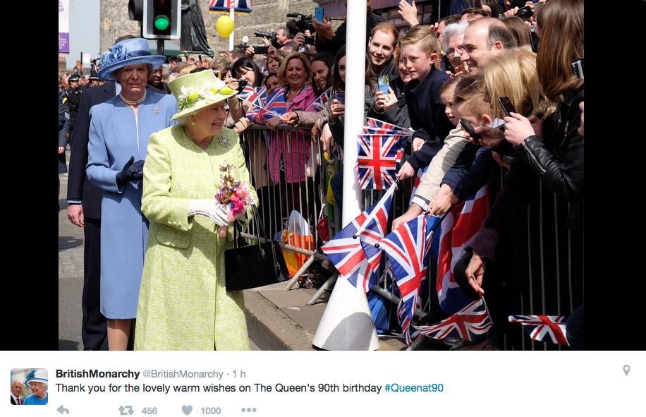 La Regina fa 90. Coperta da un cappottino rosa brilante con cappello in nuance e vestito a fiori in tinta Elisabetta II ha affrontato le sue (prime) 90 primavere con il sorriso sulle labbra e col Duca di Edimburgo saldamente al suo fianco.