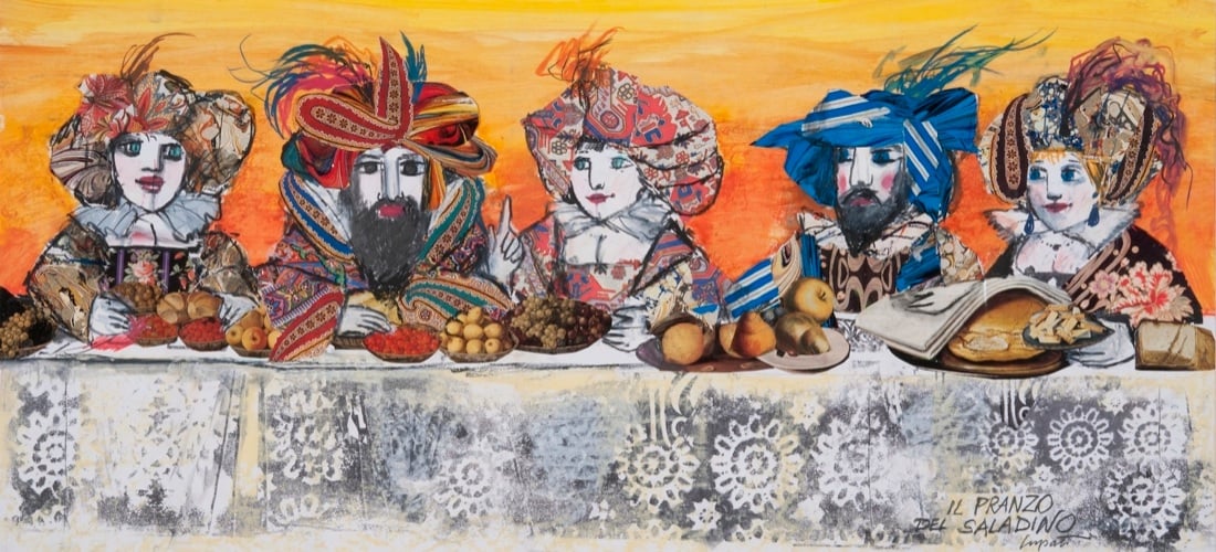 L’ esposizione comprende una trentina di disegni e collages originali, parte dei quali mai esposti prima, oltre ad alcune ceramiche, rappresentativi del suo lavoro: l’illustrazione per bambini con le fiabe dei fratelli Grimm, i bozzetti di scenografie, i disegni di costumi teatrali, il cinema d’animazione