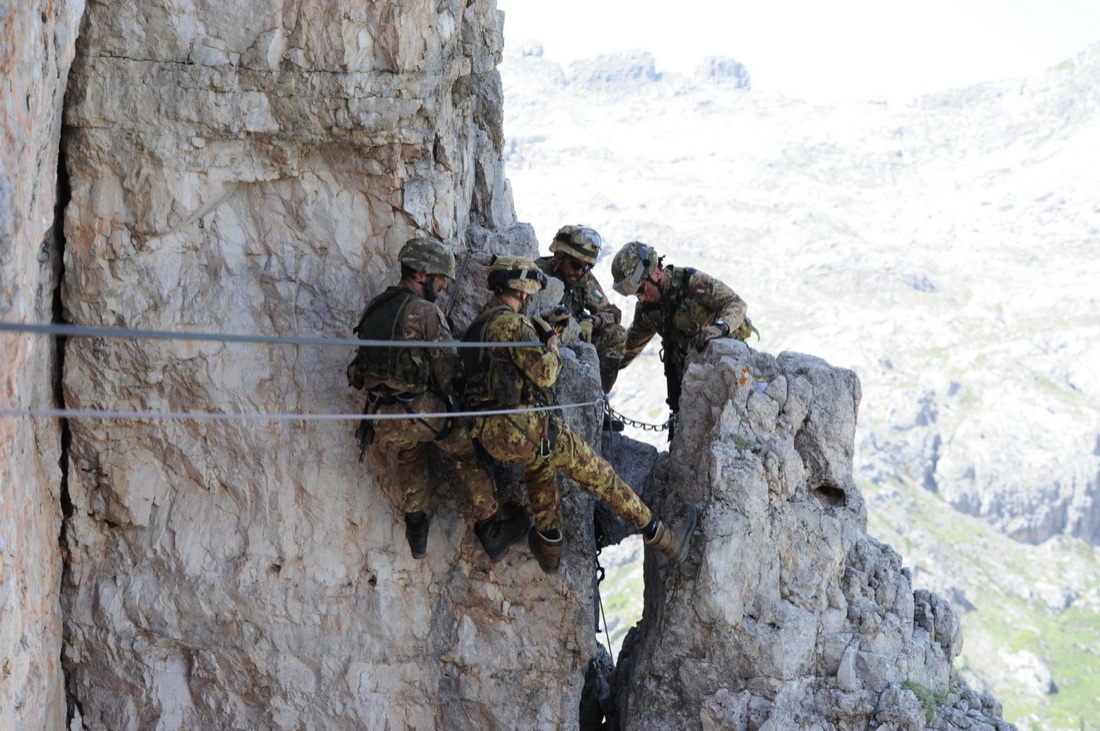 Le massime autorità militari ed un folto pubblico hanno assistito alla dimostrazione delle capacità dell’ Esercito nel saper operare in ambiente montano: ascensioni in parete di difficoltà fino all’8° grado e traversate aeree con corde statiche, alternate a tecniche di soccorso con e senza l’ausilio di elicotteri, sono state la premessa all’esercitazione tecnico tattica in cui, oltre agli Alpini della Brigata Julia, sono stati impegnati anche ranger delle Forze per Operazioni Speciali dell’Esercito, elicotteri dei reggimenti AVES “Altair” e “Antares”, personale del 17° reggimento artiglieria “Sforzesca” e assetti cinofili del Centro Militare Veterinario di Grosseto.