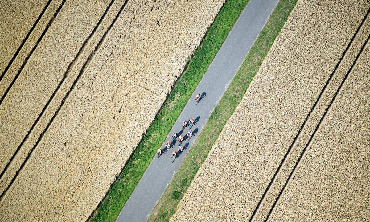 18 luglio 2016. Un gruppo di ciclisti di passaggio a Sehnde, nella Bassa Sassonia, Germania.