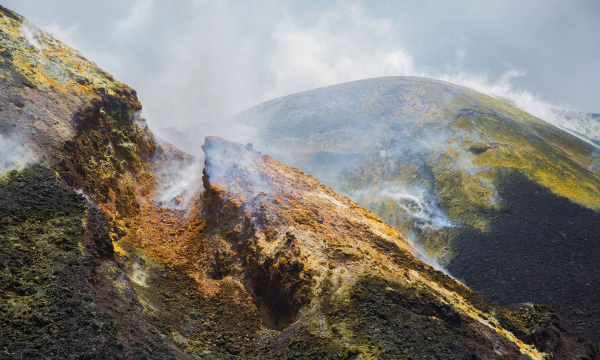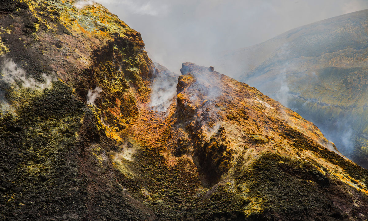 A due mesi dagli ultimi episodi di attività eruttiva dell’Etna, risalenti al maggio scorso, il fotografo Marco Restivo ha scattato queste immagini sulla sommità& del vulcano siciliano, dove sono ancora in atto visibili esalazioni sulfuree particolarmente intense e dove i crateri sommitali sono in larga parte ricoperti da zolfo, che ne colorano la superficie di giallo, creando un’atmosfera spettacolare.