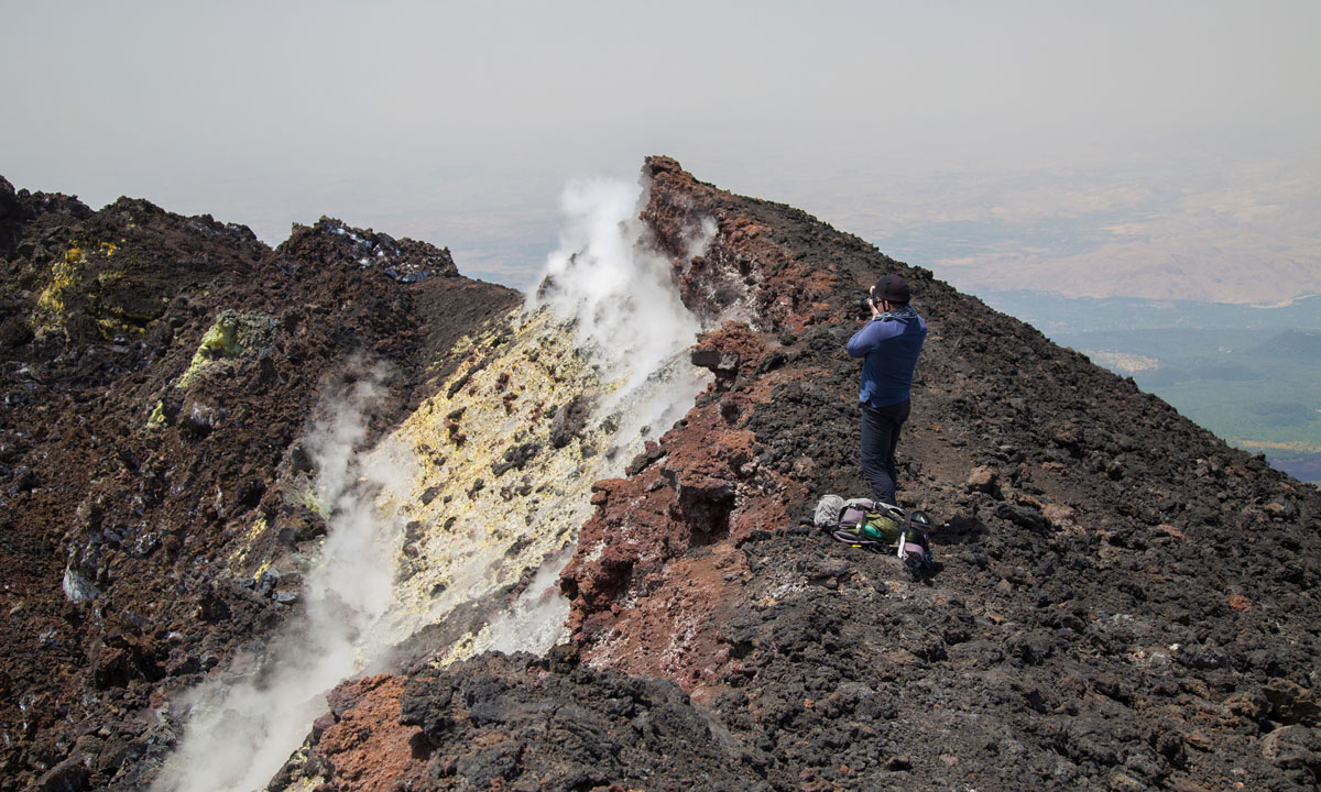 11 luglio 2016. Il fotografo in azione sulla superficie dell’Etna.
