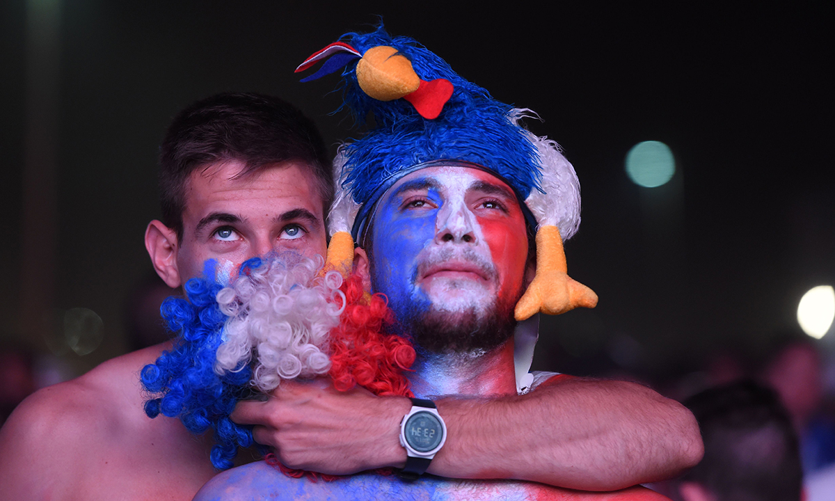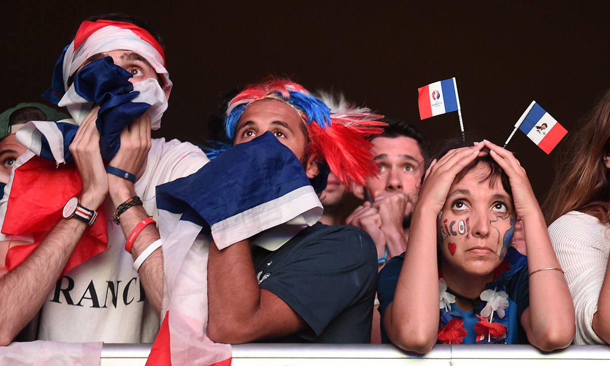 10 luglio 2016. Portogallo – Francia : 1 – 0 (Finale). La tristezza dei tifosi della Francia dopo la vittoria del Portogallo, nella zona tifosi di Bordeaux.