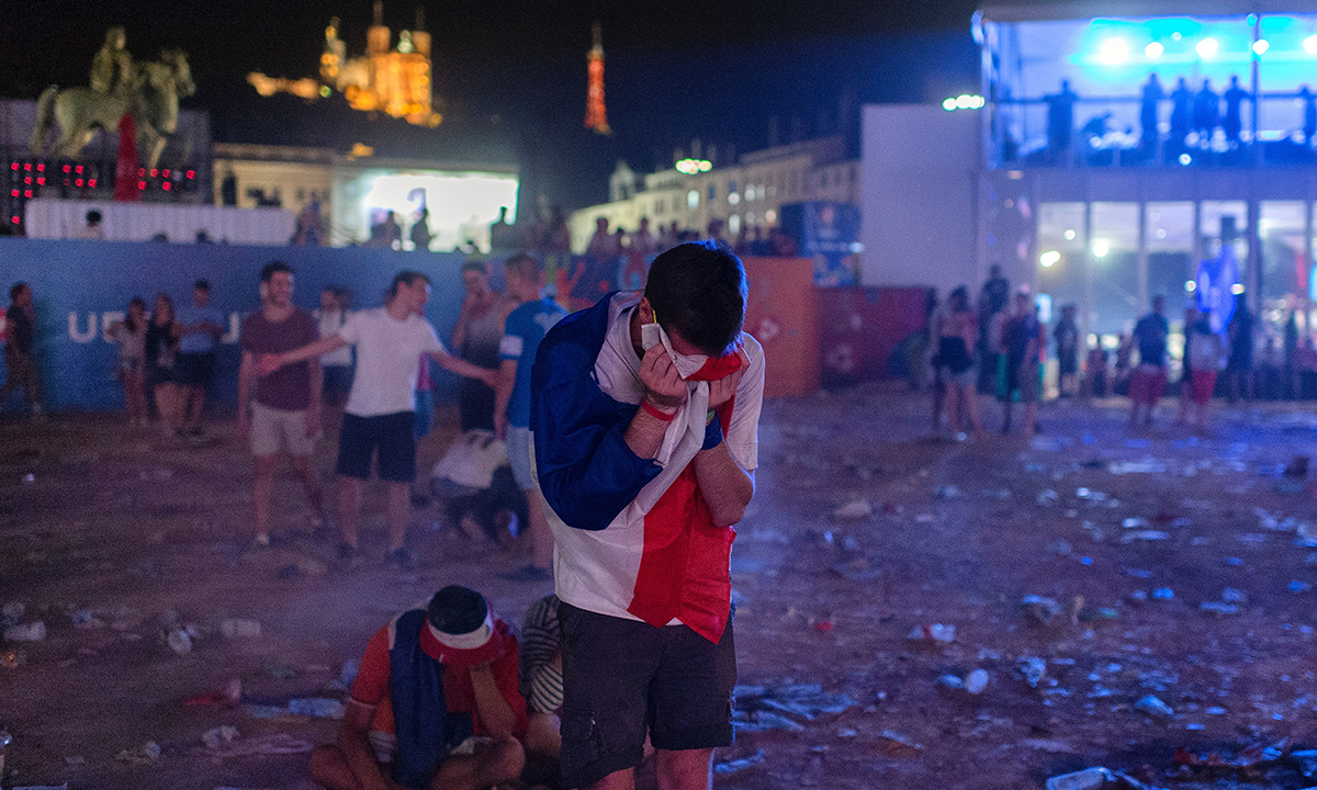 10 luglio 2016. Portogallo – Francia : 1 – 0 (Finale). La tristezza dei tifosi della Francia dopo la vittoria del Portogallo, nella zona tifosi di Lione.