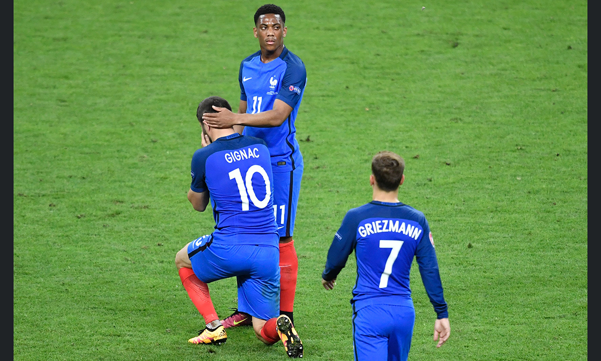 7 luglio 2016. Germania – Francia : 0 – 2 (semifinale). La nazionale francese saluta i tifosi allo stadio Velodrome di Marsiglia, dopo aver sconfitto la Germania.