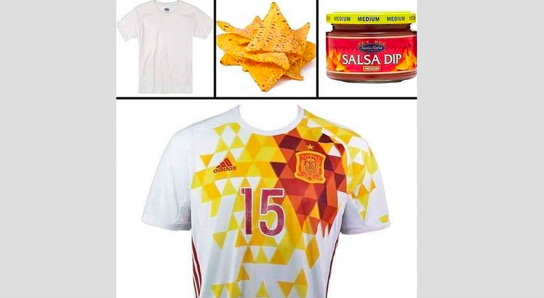 L’ironia sulla maglietta spagnola.