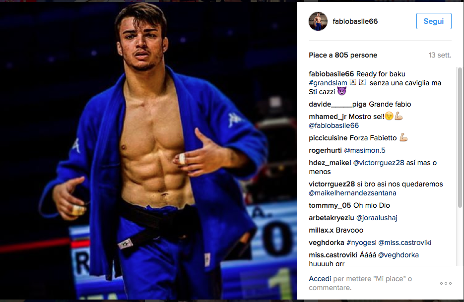 Tra un allenamento e l’altro Fabio posta foto in costume da bagno con occhiali scuri, accanto alla fidanzatina o mentre ammicca alla fotocamera con una birretta in mano. Eppure il ragazzino dal taglio di capelli da calciatore ha talento da vendere e lo ha dimostrato a Rio 2016 dove in 84 secondi ha falciato il sud coreano An Ba-Ul conquistando l’oro olimpico nel Judo.