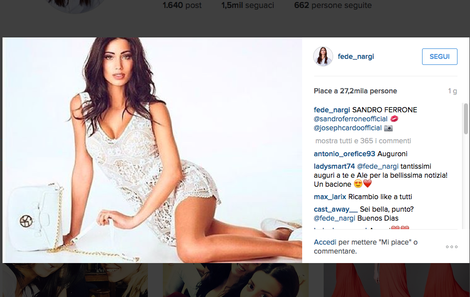 Federica Nargi, infatti, aspetta un bambino. La mora che, qualche anno fa, andava in coppia con Costanza Caracciolo è incinta del suo primo figlio.