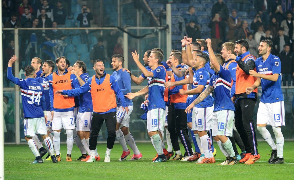 La gioia dei blucerchiati dopo il fischio finale – 4 novembre 2017