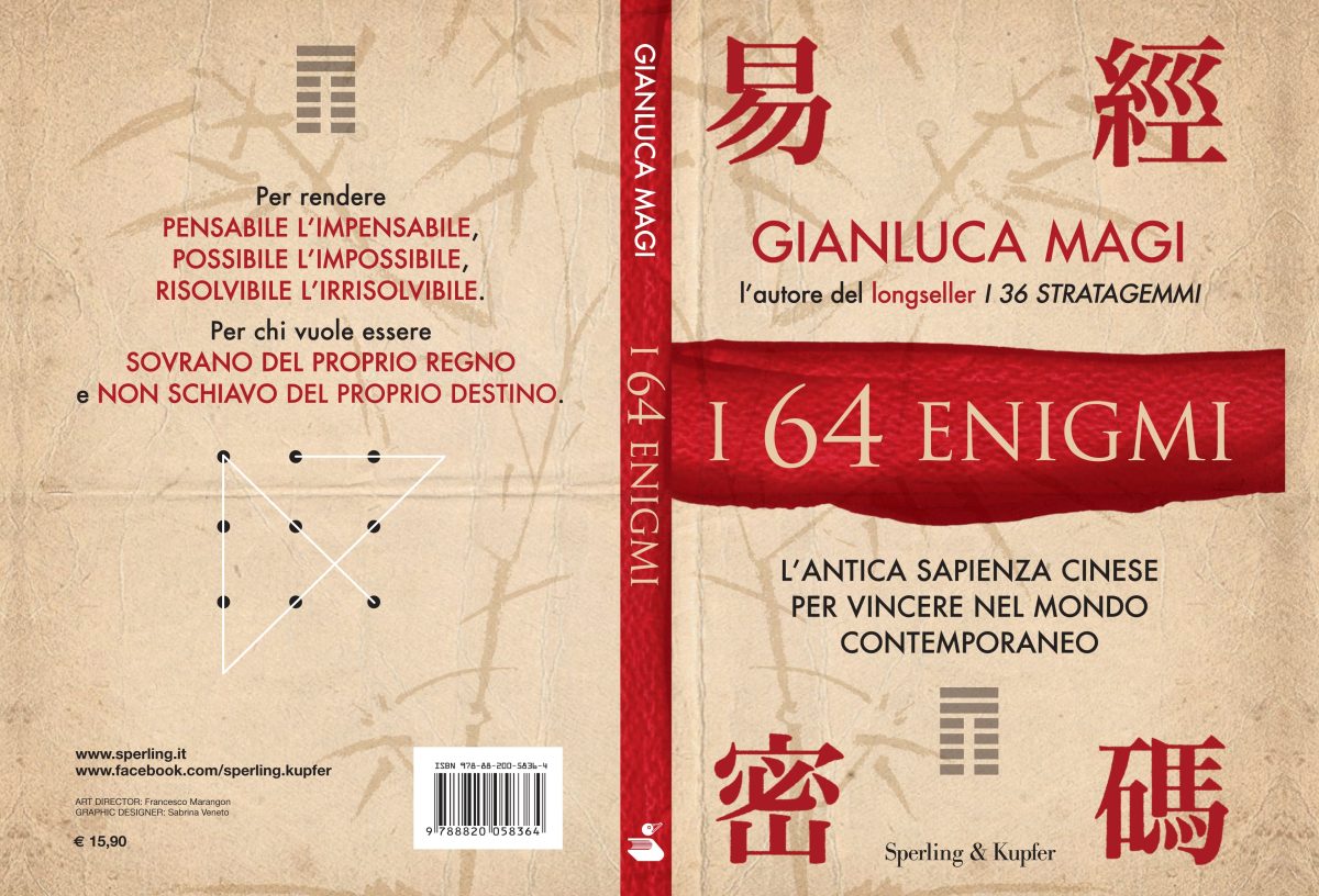 Dopo solo 24 ore dalla sua uscita è già il libro più venduto nella sezione Psicologia di Amazon. I 64 Enigmi (Sperling & Kupfer) di Gianluca Magi rischia di diventare il caso editoriale dell’anno. La sapienza millenaria degli esagrammi cinesi in 137 pagine, a uso e consumo dell’uomo contemporaneo perennemente in corsa. L’ I Ching, l’antico libro dei mutamenti di cui si era innamorato Carl Gustav Jung che ne curò l’edizione in tedesco per avvicinare i lettori occidentali a un formidabile mezzo di divinazione e di conoscenza di sé, oggi rivive nella versione 2.0 di Gianluca Magi.