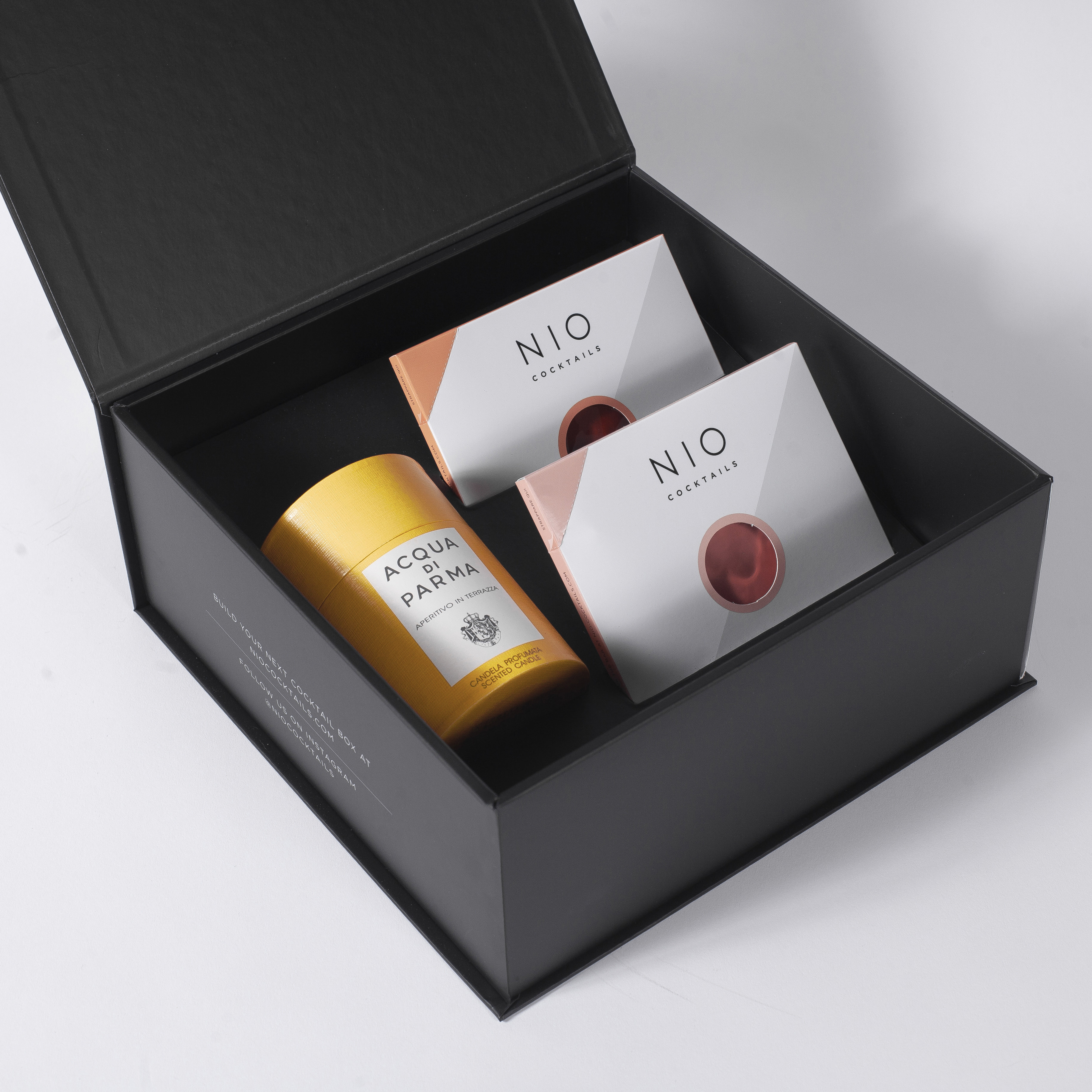 Nio Cocktail, la start up italiani che ha racchiuso i cocktail più amati in un formato pocket, questo Natale ha scelto di collaborare con Acqua di Parma per un box unico e originale. Si chiama «Aperitivo in Terrazza» e contiene una selezione di due cocktail a scelta e una candela firmato da Acqua di Parma. Bastano due bicchieri e dei cubetti di ghiaccio, agitate la vostra bustina e versate il vostro cocktail firmato dal noto barman Patrick Pistolesi. Un mix dalla qualità eccezionale da abbinare all’eleganza di una candela a base di spezie agrumate, per apprezzare al meglio l’atmosfera di un aperitivo italiano e rendere speciale la vostra casa.