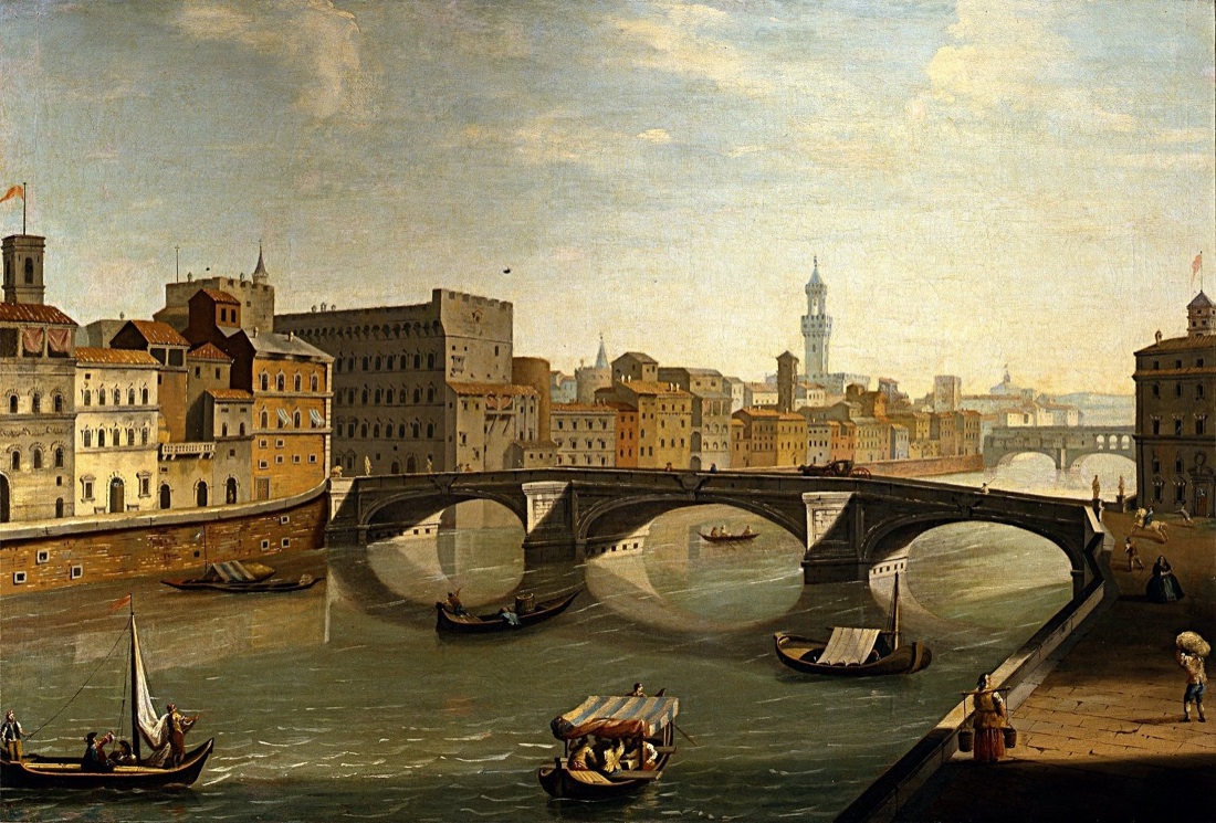 Vincenzo Torregiani, Veduta dell’Arno con ponte Santa Trinita 1750 c. Olio su tela