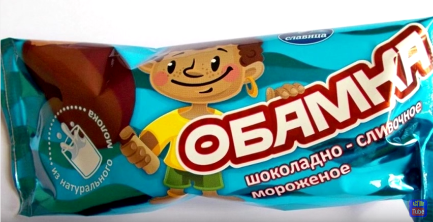 Come chiamare un gustoso stecco al doppio cioccolato scuro dentro e fuori? La ditta russa Slaviza di Naberežnye Čelny, nella repubblica russa del Tatarstan, non ha avuto dubbi: Obamka con tanto di omino nero sorridente sulla confezione.