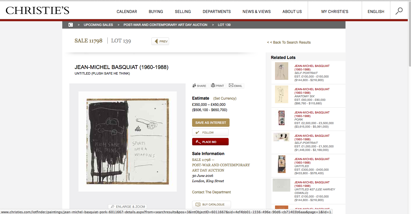 A Londra la casa d’aste Christie’s ha battuto due opere del pittore Jean-Michel Basquiat appartenenti alla collezione personale di Johnny Depp: i due pezzi sono stati rispettivamente venduti a 4,7 e 6,8 milioni di dollari, per un totale di oltre 11 milioni di dollari. L’annuncio della messa all’asta delle opere era arrivato, a sorpresa, solo qualche settimana fa. Si tratta di 7 capolavori messi insieme nel corso di 25 anni di ricerca e collezionismo. Depp ha sempre amato l’arte di Basquiat che riteneva essere un visionario illuminato.