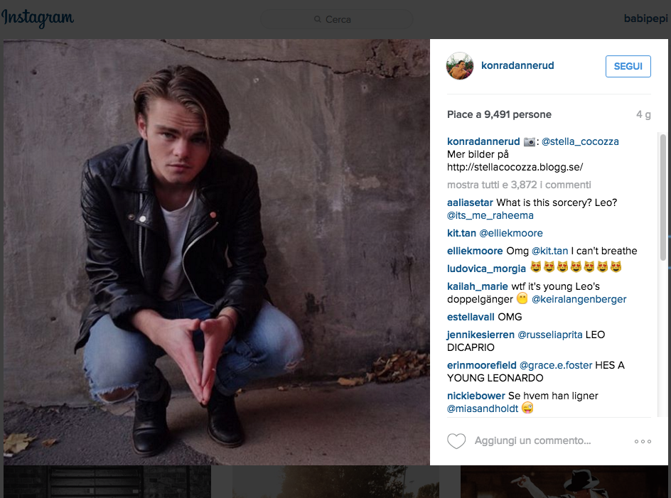 Si dice che di belli così ne arrivi uno per generazione…E infatti è passata una generazione dalla faccia d’angelo ribelle di Leonardo Di Caprio versione Romeo & Juliet o Titanic e l’arrivo del suo sosia, Konrad Annerud, il ventunenne svedese che pare la copia del Leo anni ’90, quel giovane attore agli esordi che ha fatto innamorare una generazione di ragazze.