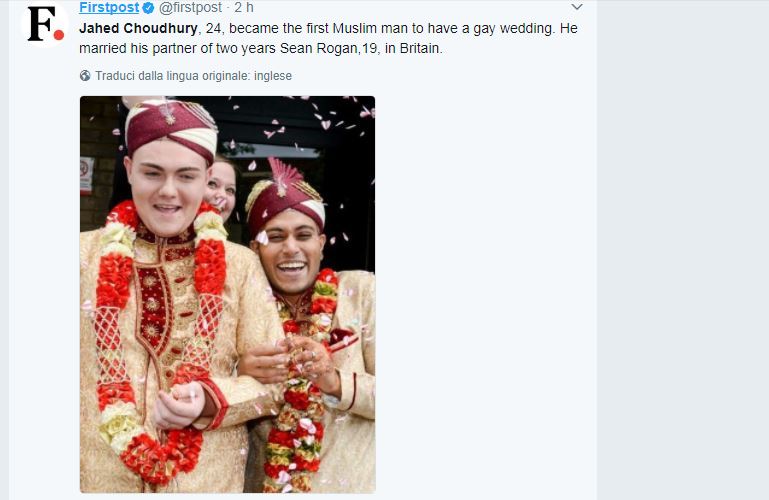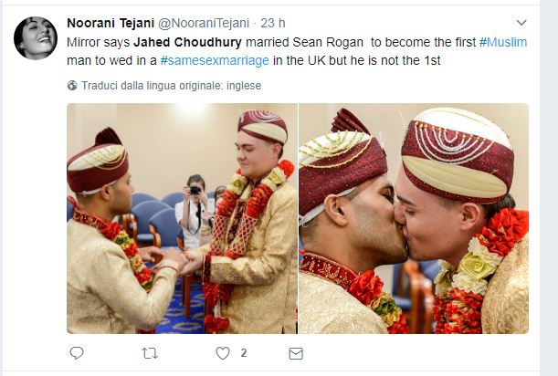 Jahed Choudhury e Sean Rogan si sono detti sì in Inghilterra e il loro matrimonio è il primo della storia per una coppia gay di religione musulmana.
