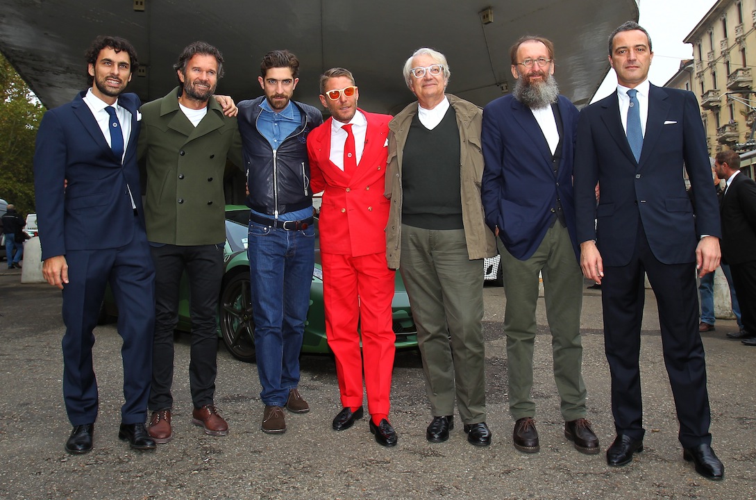 Da sinistra: Mattia Beda, Chef Carlo Cracco, Carlo Borromeo, Lapo Elkann, guest, l’architetto Michele De Lucchi e Lorenzo Landini