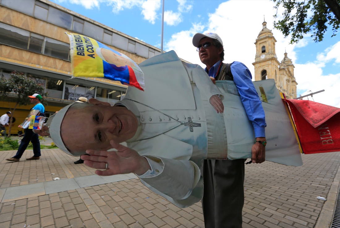 Bogota, Colombia. La gigantografia di Papa Francesco prima della visita del Pontefice