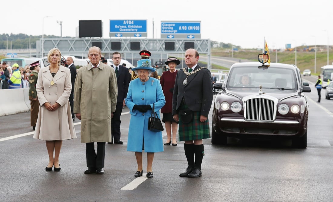 La regina Elisabetta e il Principe Filippo alla cerimonia dell’apertura del Queensferry Crossing, nuovo ponte stradale nei pressi di Edimburgo, Scozia. 4 settembre.