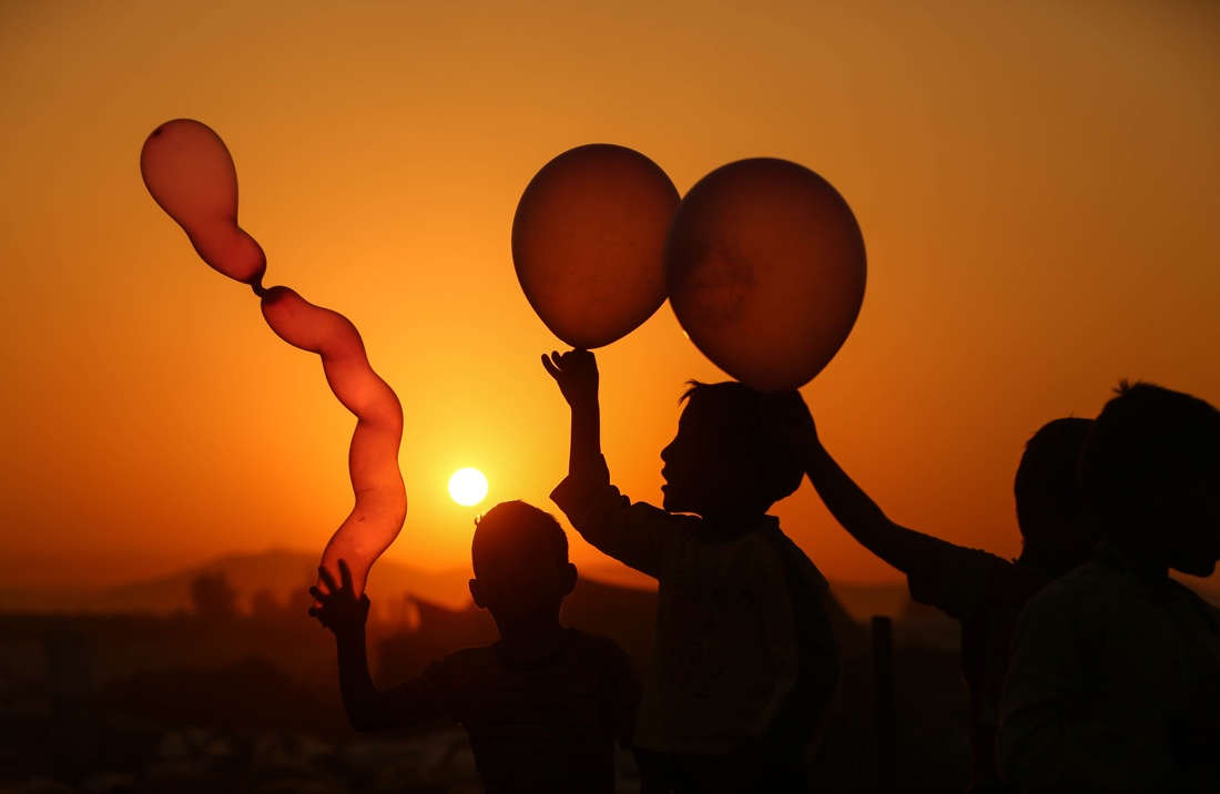 I palloncini dei bimbi siriani si sono levati nei cieli di guerra sopra Damasco durante la festa islamica di Eid-Al Adha, in contrapposizione allo sguardo sperduto di un piccolo profugo birmano fuggito in Bangladesh dopo l’eruzione della violenza contro la minoranza dei Rohingya.