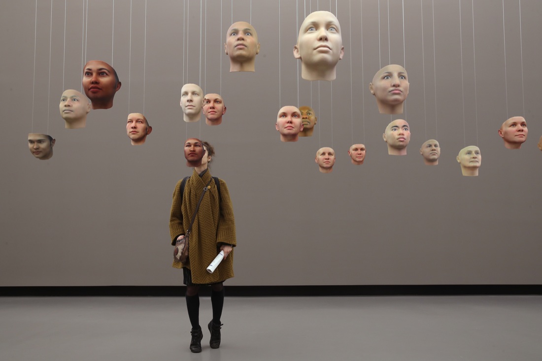 Le trenta maschere basate sul DNA di Chelsea Manning, l’uomo Wikileaks opera di Heather Dewey-Hagborg in mostra a Berlino. 31 gennaio