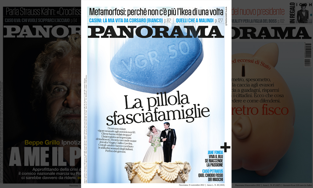 La storia di copertina su Panorama in edicola spiega infatti come l’aumento di diffusione di questi farmaci non riguardi solo gli anziani ma anche gli adolescenti che si mettono al sicuro da aventuali figuracce sotto alle lenzuola mandando giù l’elisir della prestazione perfetta. Aumenta però in questo modo l’insicurezza e la difficoltà a creare fiducia e scambio nella coppia alla base di una serena vita sessuale. Su Panorama le opinioni di Ritanna Armeni, Chiara Gamberale, Silvia Ronchey e Michela Marzano e l’intervista a Jane Fonda. L’attrice sex symbol anni sessanta e settanta spiega perchè, ad una certa età, l’aiutino può servire