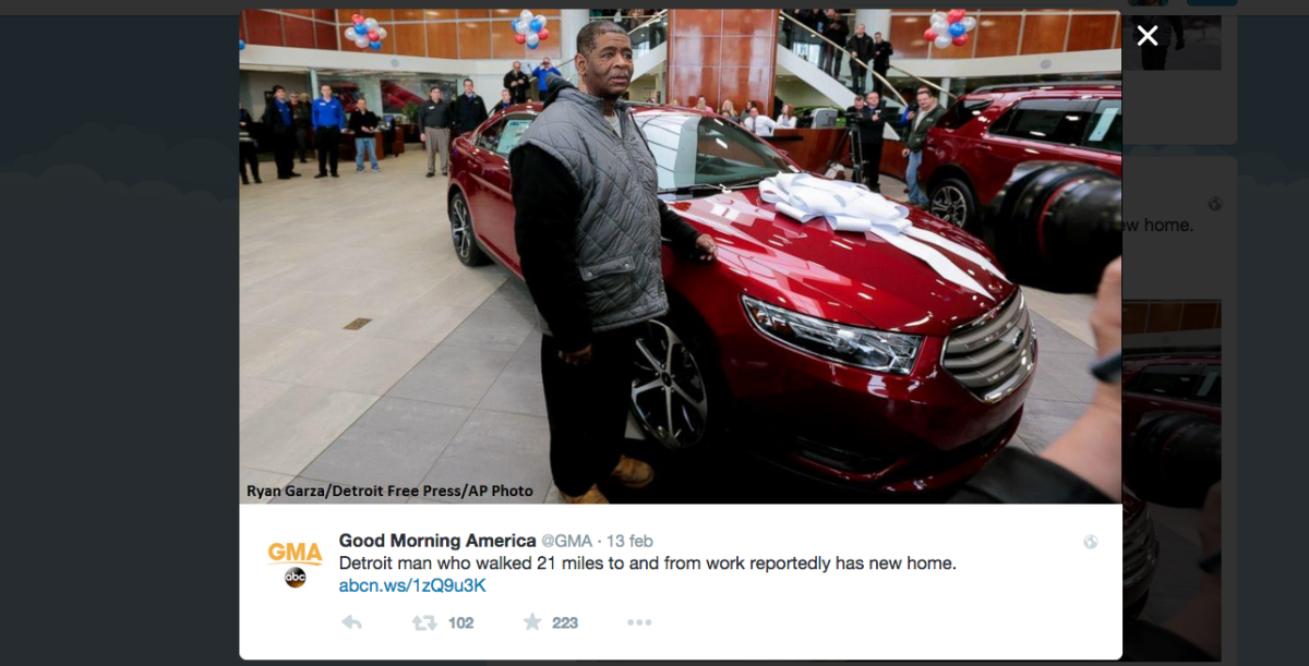La storia è stata pubblicata sul giornale di Detroit e, al resto, ci ha pensato la Rete. Il sito di fundraising GoFundMe creato ad hoc per aiutare lo sfortunato operaio nero dalla volontà di ferro serviva a raccogliere circa 5.000 dollari per compare un’auto a James.