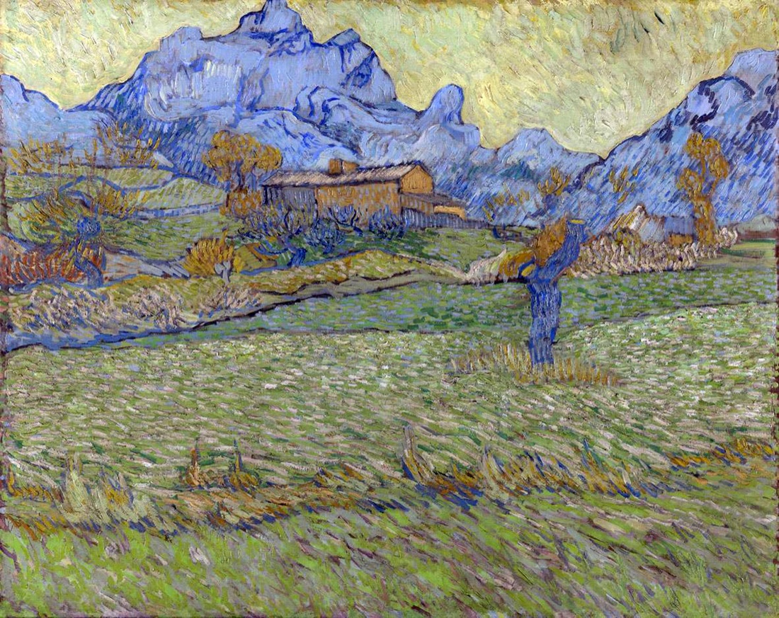 Campo di grano in un paessaggio collinare, olio su tela di Vincent van Gogh (1889)