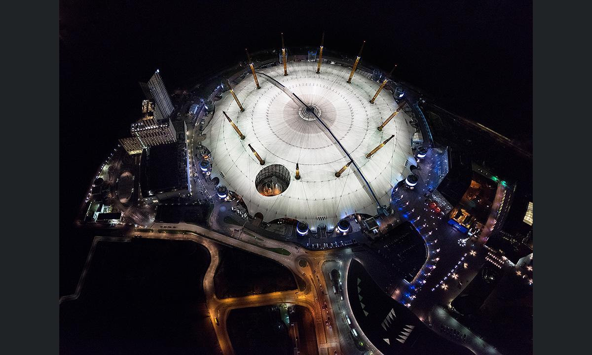Londra, Regno Unito, novembre 2015. La O2 Arena vista dall’alto.