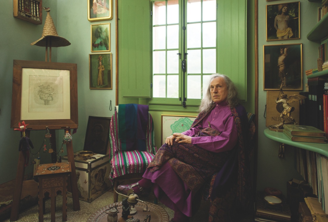 Bizzarra come RomAmor, il villino in cui Ontani vive una parte del suo tempo, fatto costruire assieme alla Rocchetta dal conte Mattei per ospitare pazienti celebri che si sottoponevano all’elettroomeopatia (terapia adoperata ancor oggi diffusamente dalla medicina indiana). Una casa d’ artista fiabesca RomAmor, che dai mobili, ai lampadari di Murano, alle ceramiche sui muri, alle vetrate, insieme allo studio e al vasto giardino, dipana sotto forma di serissimo gioco uno statuto zen meraviglioso e singolarissimo.