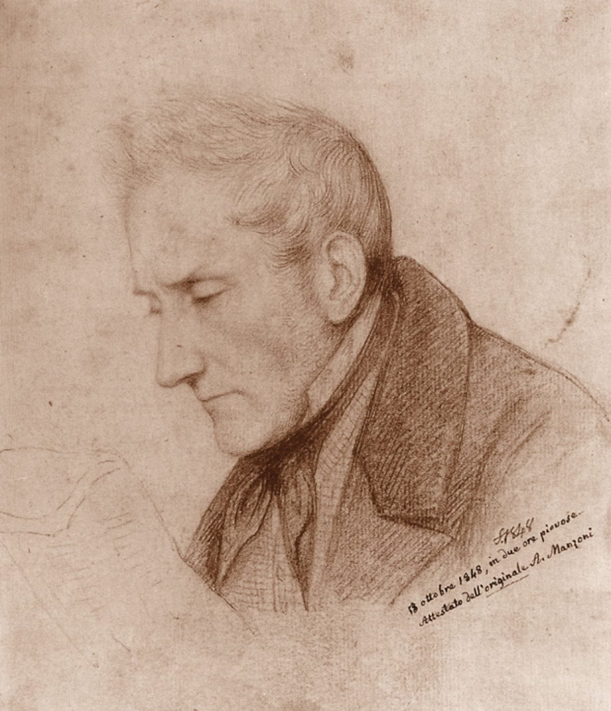 Nasce nel 1785, per cui quando a Parigi scoppia la rivoluzione francese non sa ancora leggere e scrivere, ma quando a Parigi va ad abitare di anni ne ha venti e, nel pieno delle passioni di quell’età, vive al massimo gli entusiasmi libertari e l’ascesa di Napoleone. E’ a Milano quando scoppiano i moti rivoluzionari del 1820, del 1830 ed è ancora lì quando, nel marzo del 1848, la città vive le gloriose cinque giornate che si concludono con la cacciata dell’invasore austriaco. Manzoni respira l’aria dell’unità, incita alla discesa in piazza i giovani, compreso suo figlio, scrivendo un’ode civile, “Marzo1821”, che suona come un inno per chi dà la vita per fare l’Italia.