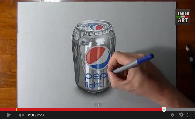Marcello Barenghi ha aperto un canale You Tube dove posta le sue incredibili illustrazioni: dalla banconota stropicciata al pacchetto di patatine, dalla lampadina fino ai soggetti animali.