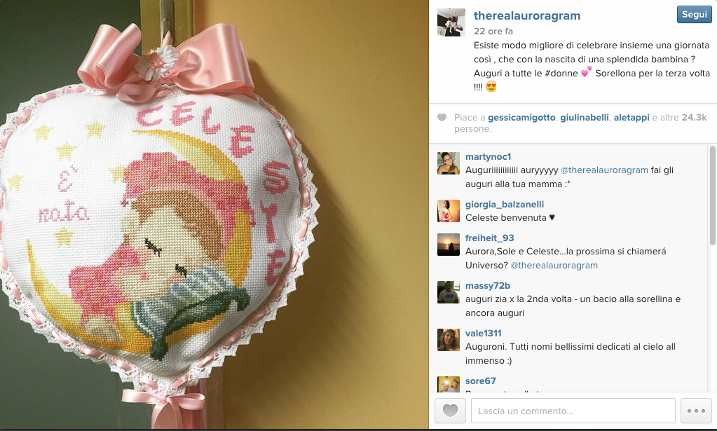 E papà Tomaso aggiunge: “Oggi si festeggiano le donne; quale dì più importante e significatIvo. Per noi si riempie di una gioia ancor più grande. È nata la piccola Celeste!!! Grazie a tutti coloro che ci hanno sostenuto ed assistito”