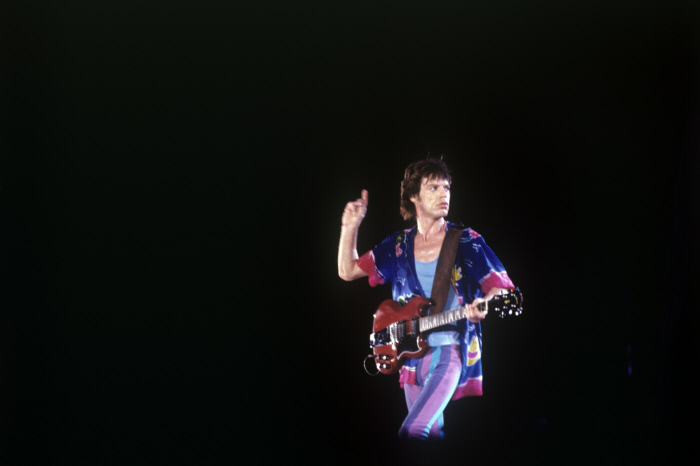 Jagger in concerto con i Rolling Stones a Torino nel luglio 1982