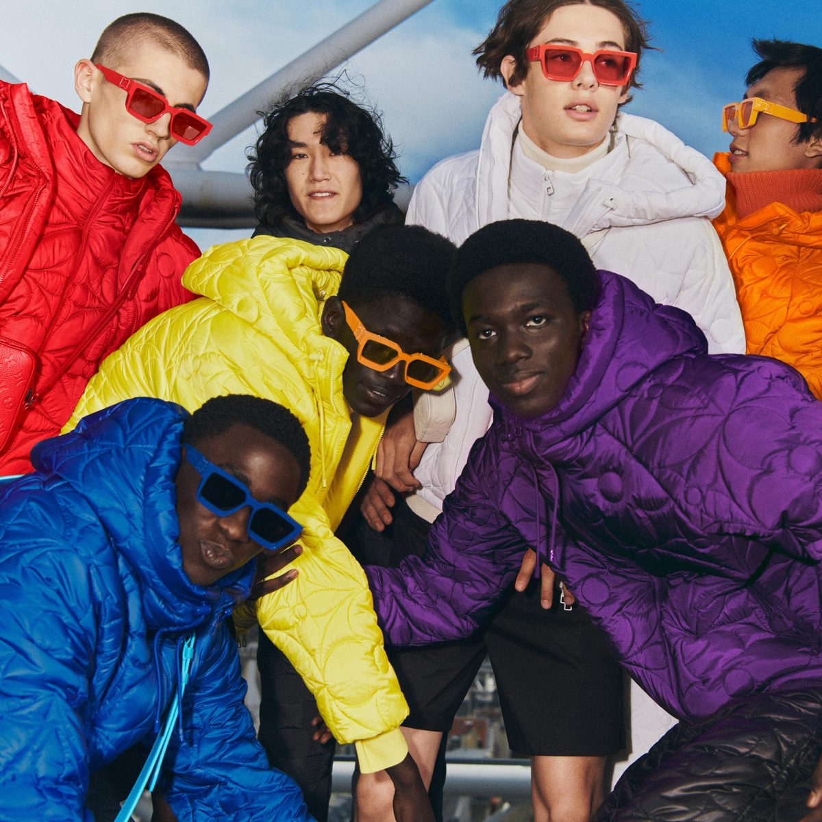 «Un pezzo di arcobaleno» dai colori vivaci si estrapola dalla collezione uomo Louis Vuitton disegnata da Virgil Abloh per dedicare alla generazione in movimento un inverno facile da indossare e da abbinare, colorato e leggerissimo. Felpe con cappuccio e blouson imbottiti con Monogram Flower si abbinano a pantaloni sportivi, indossati spaiati o come total look color block, su cui poggiare un giubbotto imbottito o un piumino abbondante in una versione leggerissima e hightech dalle tonalità accese: verde, rosso, arancio, nero, giallo, viola.