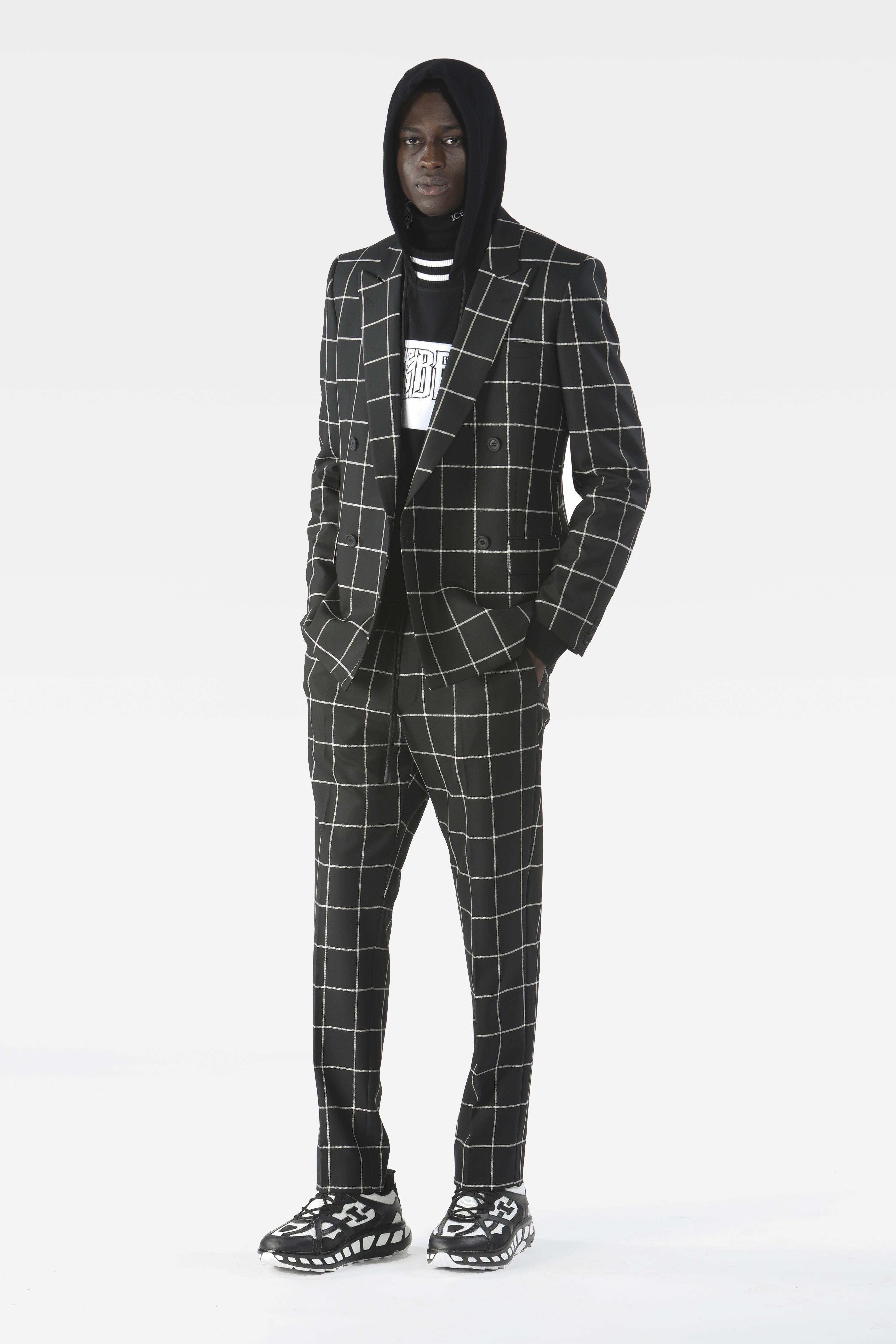 Un inedito sportivo sofisticato che rende omaggio alle silhouette da raver, agli stili rétro e active e ai completi sartoriali in lana check, enfatizzati da imbottiture 3D, zip e chiusure hightech, tasconi arricciati e grafiche prese dai personaggi dei fumetti Peanuts Snoopy, Charlie Brown e Woodstock. La palette cromatica di questo morbido athleisure è composta da tenui gialli primula, avorio e grigi, per poi ritornare al bianco e nero urbano.