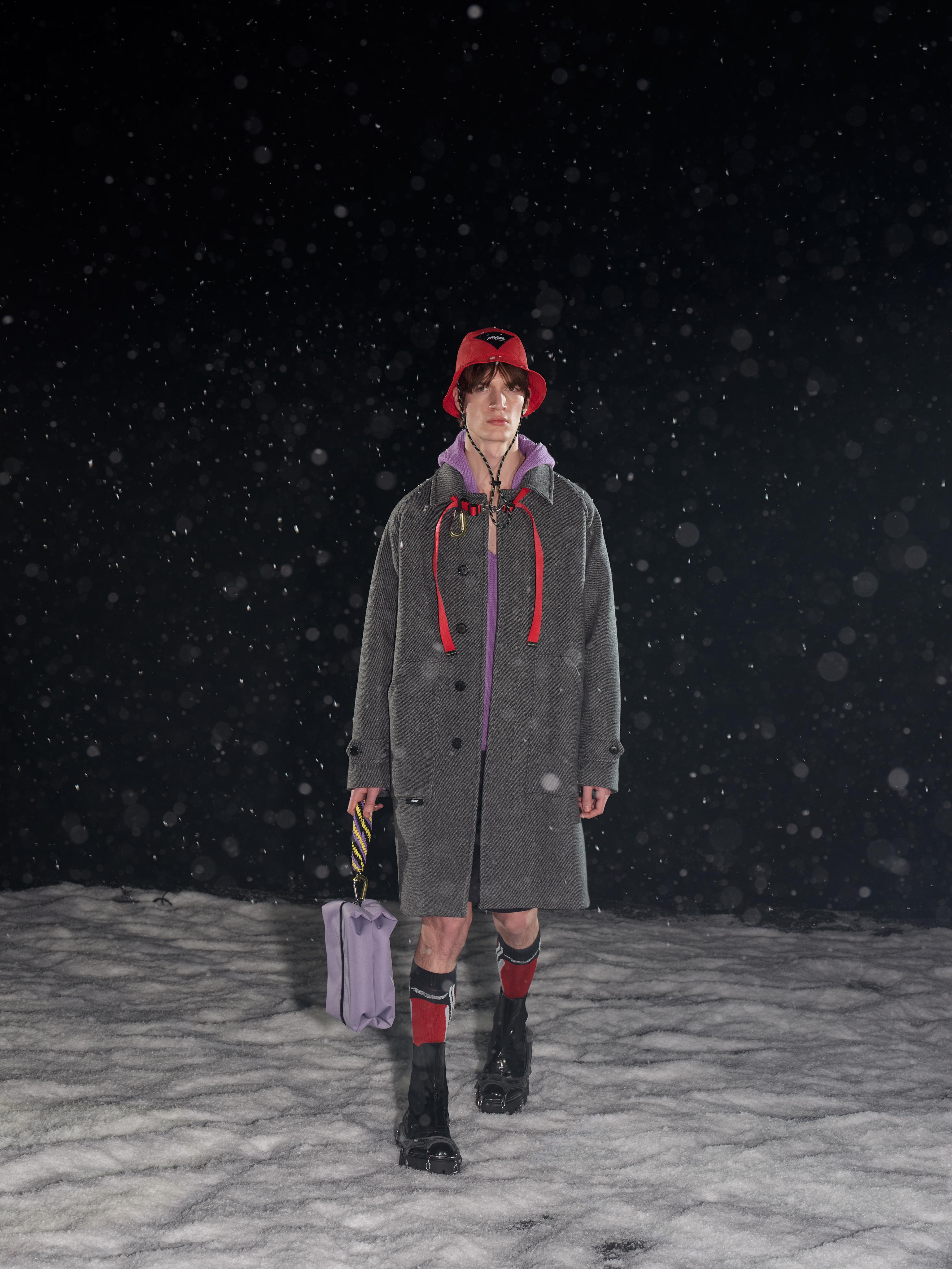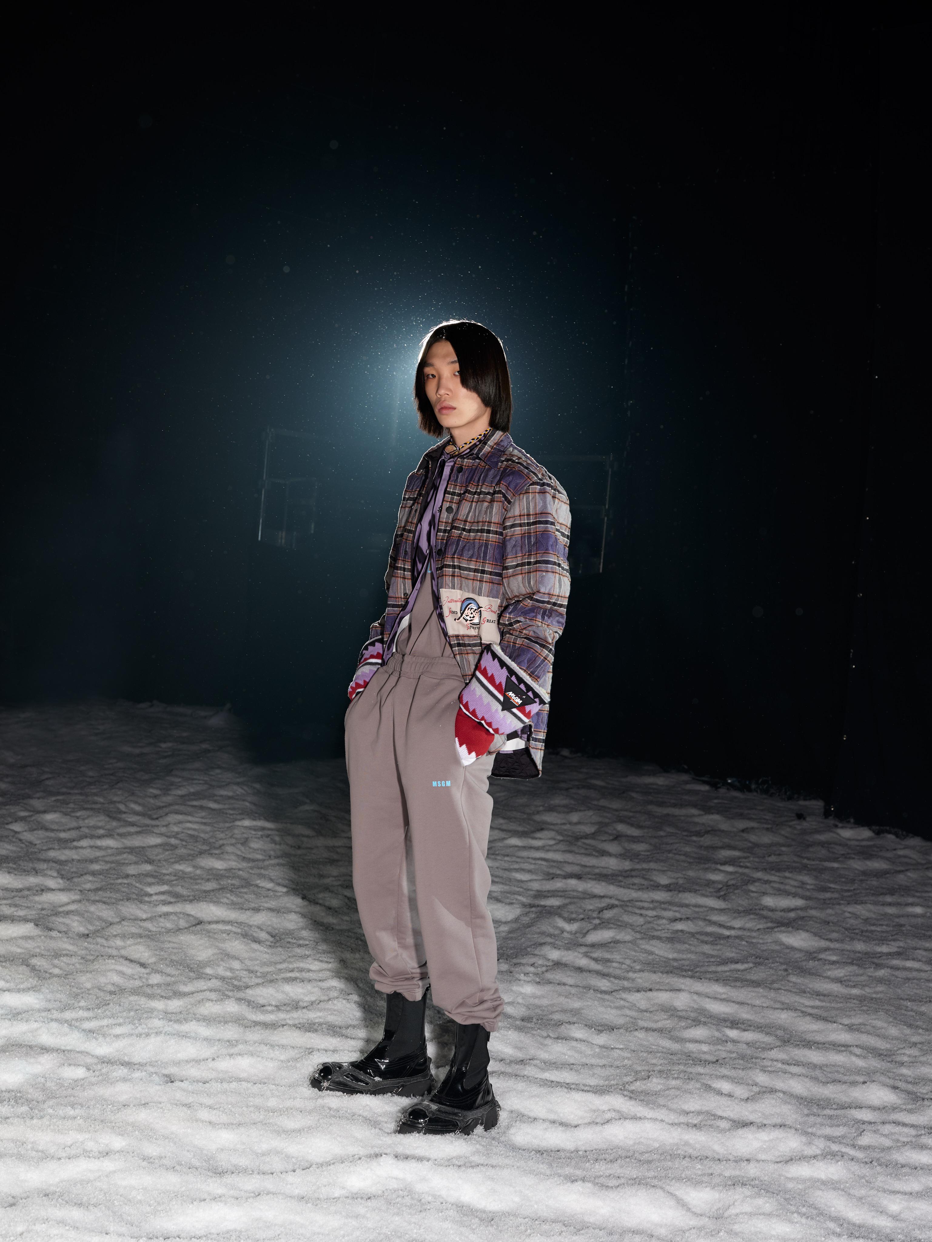 Anche il guardaroba di Msgm progettato da Massimo Giorgetti esplora la vertigine degli strapiombi ad alta quota e le bellezze della vette innevate, non addomesticate, spiazzanti, adrenaliniche, ma anche maestose e pacifiche.