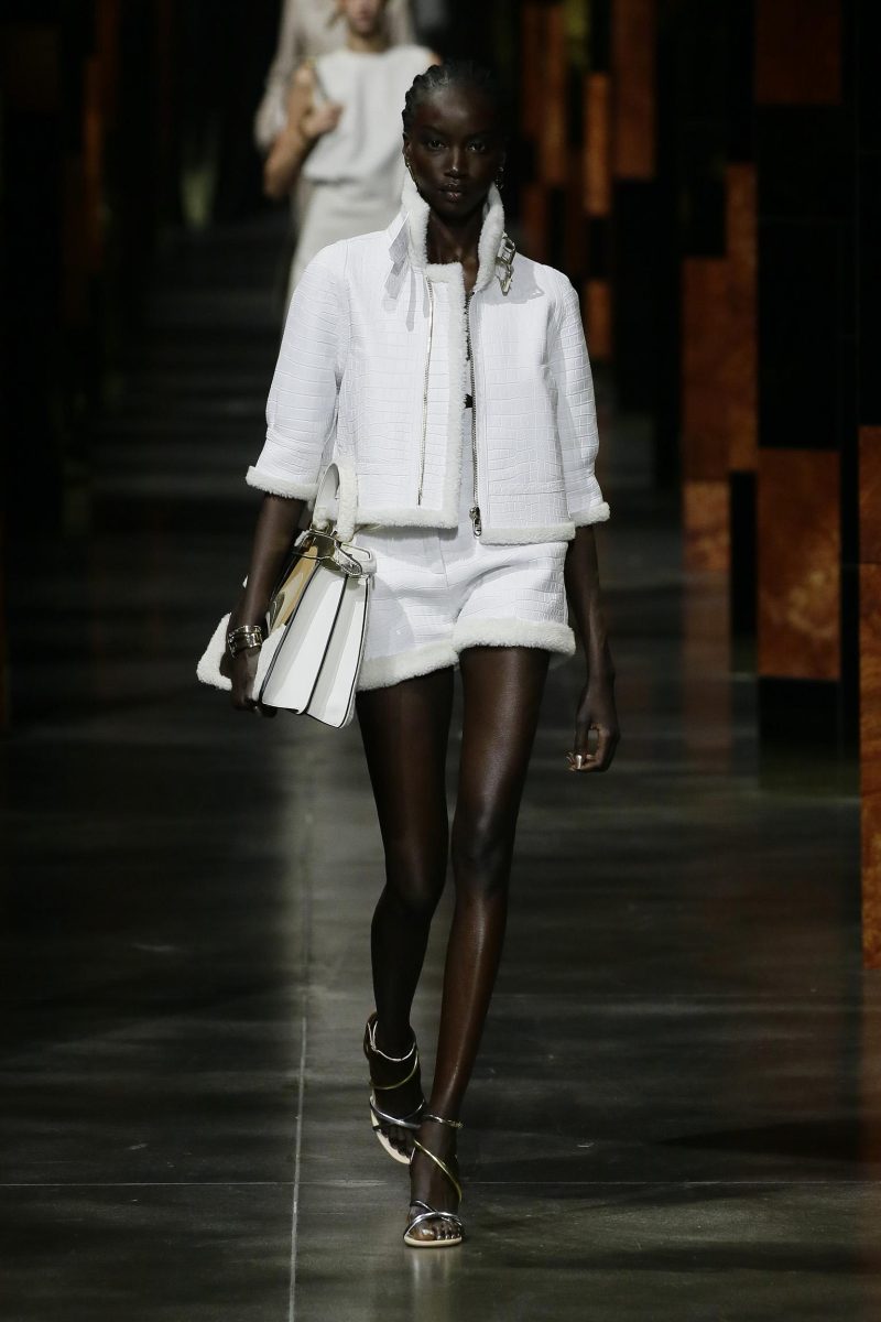Se il punto vita diventa protagonista, ecco che viene sigillato dalla cintura gioiello con doppia F.